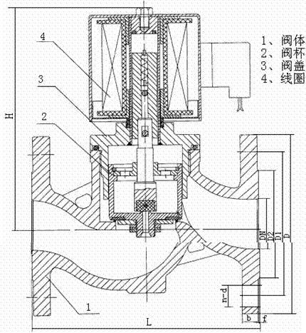 本閥為分步動(dòng)作直接導(dǎo)式常閉電磁閥,線圈通電后銜鐵先帶動(dòng)小閥開啟,大閥在所形成的介質(zhì)壓差和電磁力的作用下而開啟。線圈斷電,銜鐵部件復(fù)位,大小閥利用介質(zhì)壓力而緊密關(guān)閉。