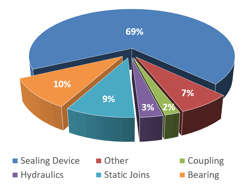 泵出現(xiàn)故障的原因有很多,但如下圖所示,超過三分之二的故障與密封裝置問題有關(guān)。隨著節(jié)約用水和減少需要處理的廢液數(shù)量的運動,該行業(yè)越來越依賴機(jī)械密封。隨著安裝人口的增長,直接由機(jī)械密封引起的泵故障的百分比也在增加。