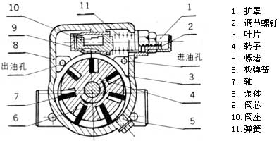 (4)為維持正常出油效率及壓力,可利用葉片泵上溢流閥的調(diào)節(jié)螺釘進行油路的壓力調(diào)節(jié)。